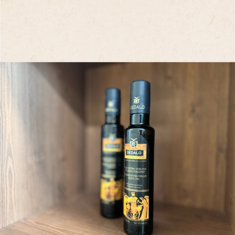 두가지 우수한 올리브 품종인 노첼라라(Nocellara)와 비안콜리아(Biancolilla)를 압착하여 얻은 비교할 수 없는 향의 엑스트라 버진 올리브 오일(압착 올리브유)
